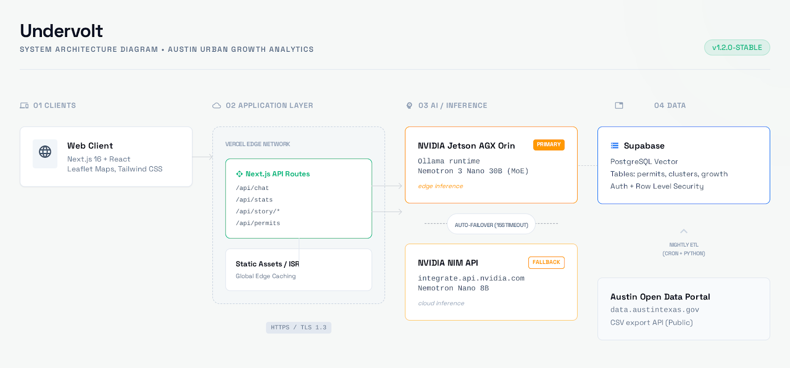 Pipeline designed to run on any hardware: NVIDIA DGX, Jetson Edge, or standard CPU. Currently deployed on NVIDIA Jetson AGX Orin 64GB for local inference with full data sovereignty.